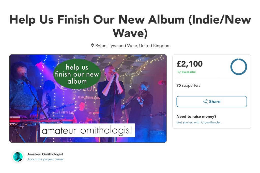I have lots of experience working on successful crowdfunding campaigns - including two I delivered for Amateur Ornithologist albums, and two I have supported other creatives with.
